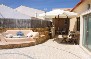 Outside there is a large sunny south-facing patio with a shaded terrace area with table & chairs, hand-sculpted outdoor sofas, large sun parasol, a bbq and many lush sub-tropical plants and flowers.There is an outside tap for washing the sand from between your toes.