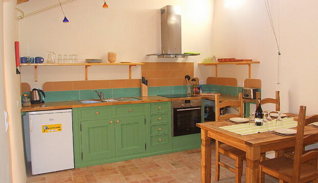 The kitchen is fully equipped for up to 6 people self-catering. Hand built with a solid Oak worktop. There is an inbuilt hob with an electric fan-assisted oven, & extractor hood above. Fridge, toaster, kettle, cafetiere, Smoothie maker. Glasses, crockery, cutlery and tea-towels are all provided.