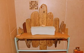 The kitchen is fully equipped for up to 6 people self-catering. Hand built with a solid Oak worktop. There is an inbuilt hob with an electric fan-assisted oven, & extractor hood above. Fridge, toaster, kettle, cafetiere, Smoothie maker. Glasses, crockery, cutlery and tea-towels are all provided.