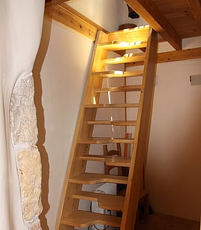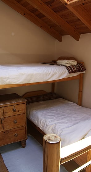 The second bedroom upstairs is accessed by a modern alternate tread wooden staircase (not suitable for young children) with two very comfortable single beds.